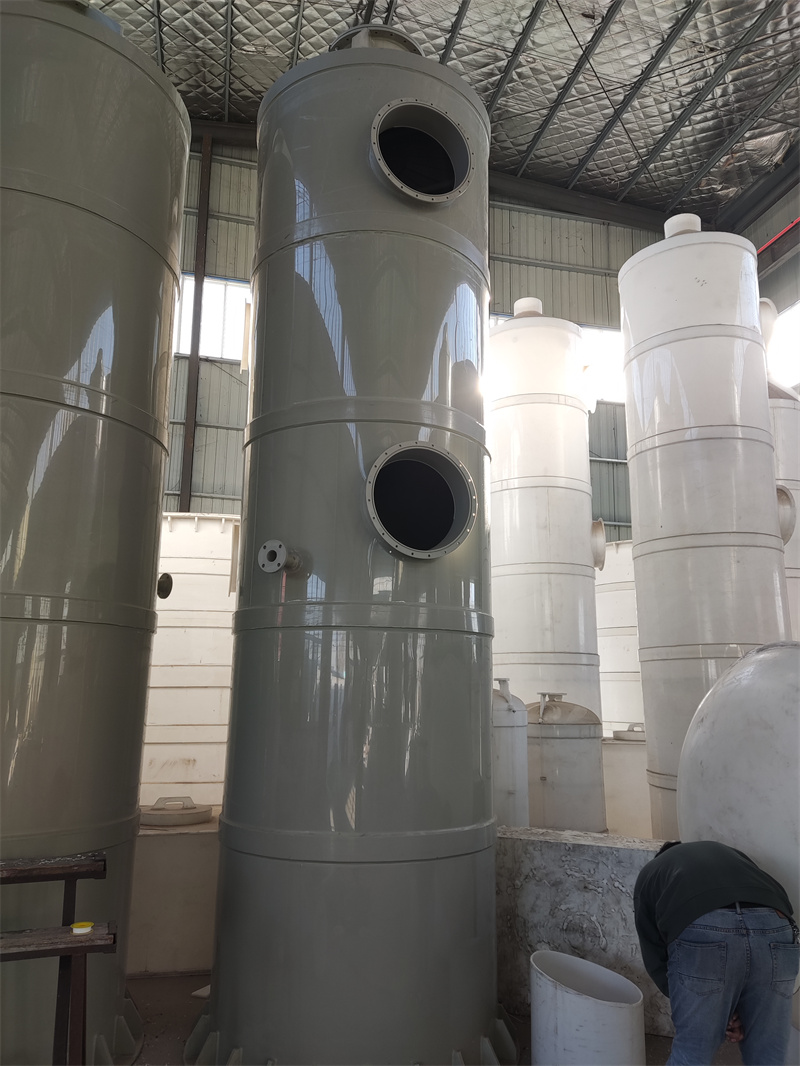 層廢氣與噴淋液進(jìn)行氣液逆流接觸,廢氣經(jīng)過凈化后,在經(jīng)除霧層脫水除霧后排出,吸收液在塔底循環(huán)池由水泵輸送至塔頂噴淋而下,后回流至塔底循環(huán)使用。PP尾氣噴淋塔一種無毒、無味的高結(jié)晶聚合塑料塔,耐酸堿,具有佳的抗腐蝕性,耐大多數(shù)的有機(jī)、無機(jī)酸、堿鹽和部分有機(jī)溶劑,是防腐領(lǐng)域常用的材料。和很多介材質(zhì)比重量較輕,有優(yōu)良的